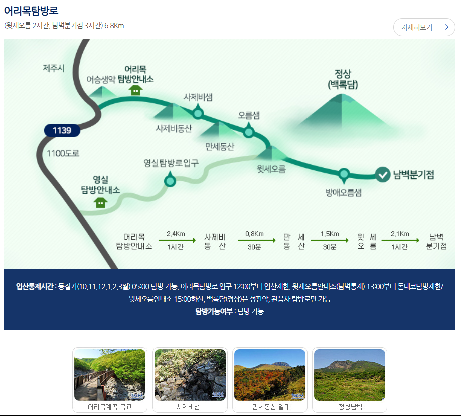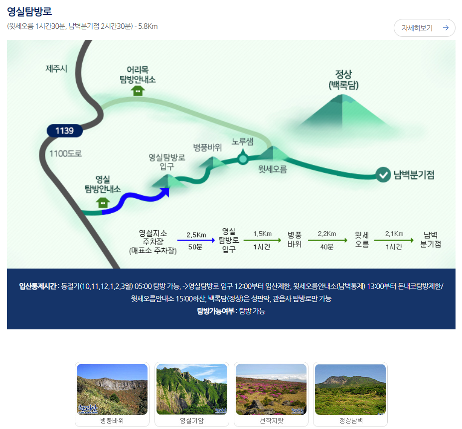 | 예약 가능 구간 | 성판악 탐방로, 관음사 탐방로 |