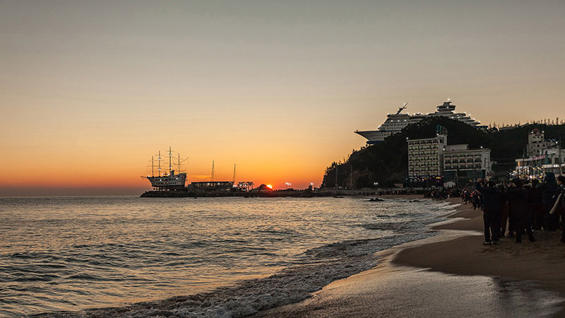 해운대는 도심 속에서 편안하게 일출을 감상할 수 있는 장소입니다. 동백섬의 누리마루 APEC 하우스 인근은 바다와 떠오르는 해를 함께 담을 수 있는 포토스팟으로 유명합니다.